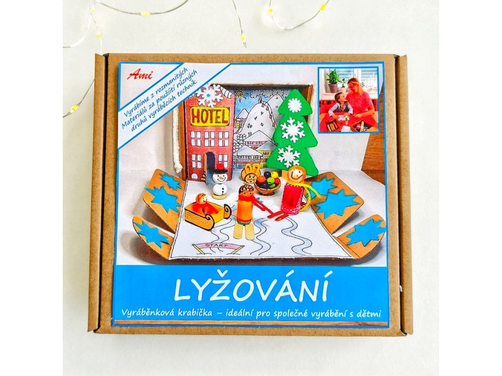 Děti si vyrobí krajinku na motiv lyžování - vybarví si sjezdovku, vyrobí hotel, zasněžený strom, figurky, sněhuláka, sáňky a mnoho dalšího, co nás uvede do radostí zimních sportů. Krabička přitom slouží jako kulisa.