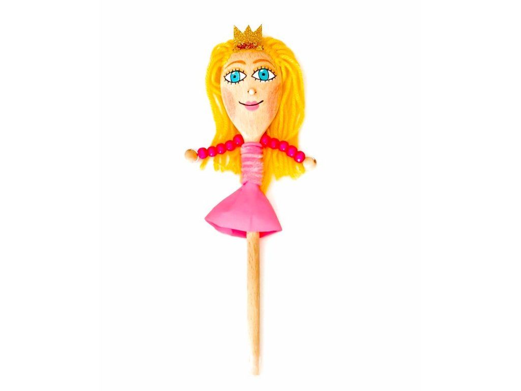 V této kreativní sadě najdete vše potřebné k výrobě krásné princezny s dlouhými vlásky - najdete zde všechny potřebné komponenty (předvrtanou vařečku, vlnu na vlásky, korunku, ...). Stačí dokreslit oči a pusinku – a jedinečná loutka je na světě.