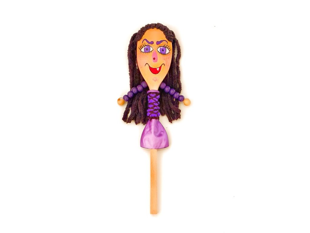 V naší vyráběnkové sadě najdete vše potřebné na vyrobení krásné čarodějnice s dlouhými vlásky. Je zde předvrtaná vařečka, vlna na vlásky a ostatní potřebný materiál. Oči a pusinka se nakreslí ..
